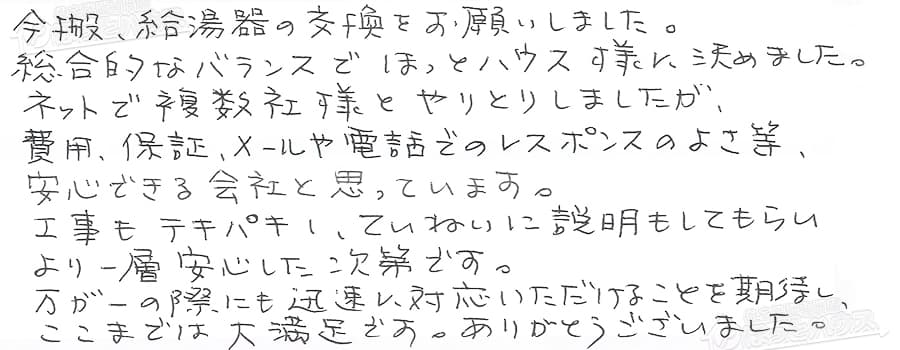 給湯器交換の評判
