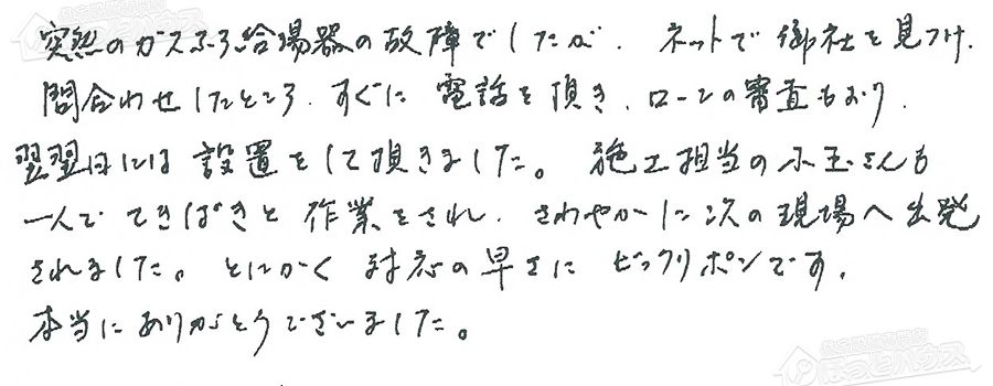 給湯器交換の評判