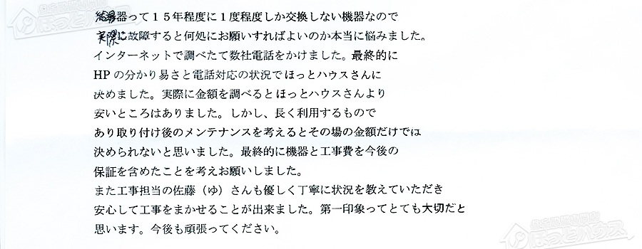 また工事担当の佐藤(ゆ)さんも優しく丁寧に状況を教えていただき