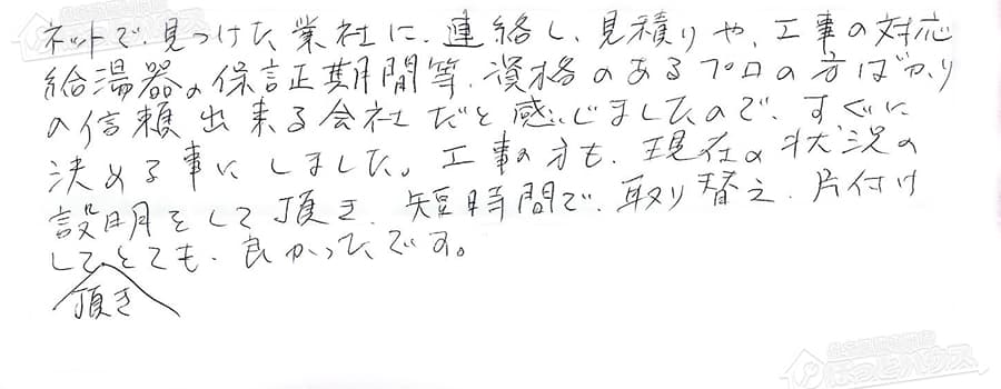 給湯器交換の評判
