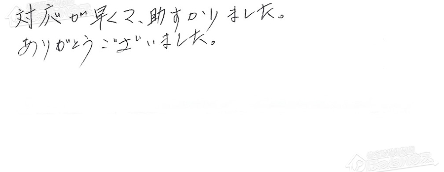 すぐに対応して頂き、とても満足…