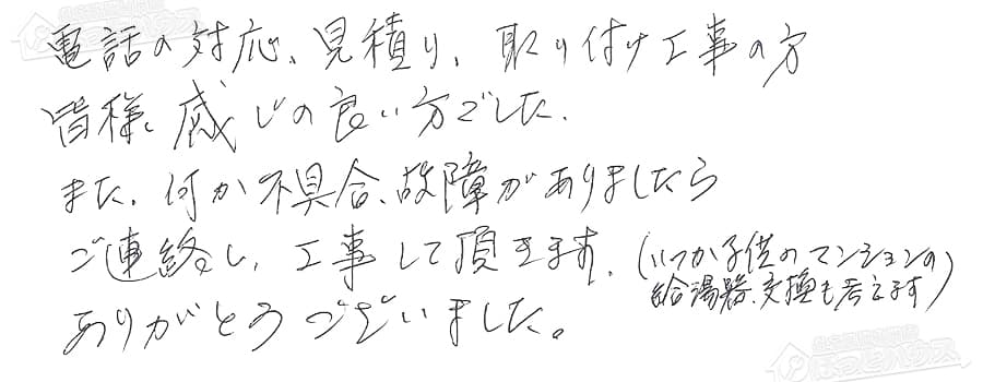 給湯器交換の評判