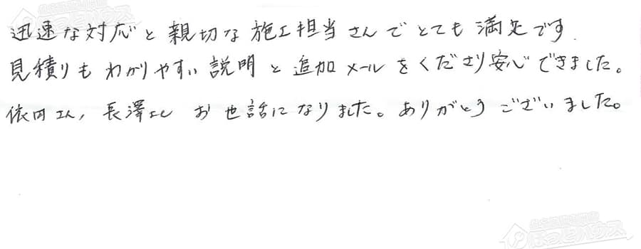 すぐに対応して頂き、とても満足…