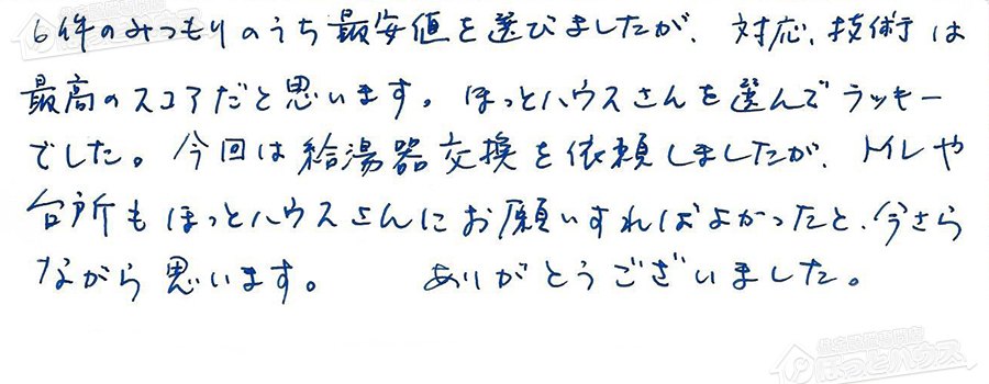 「ほっとハウス」の評判・お客様の声
