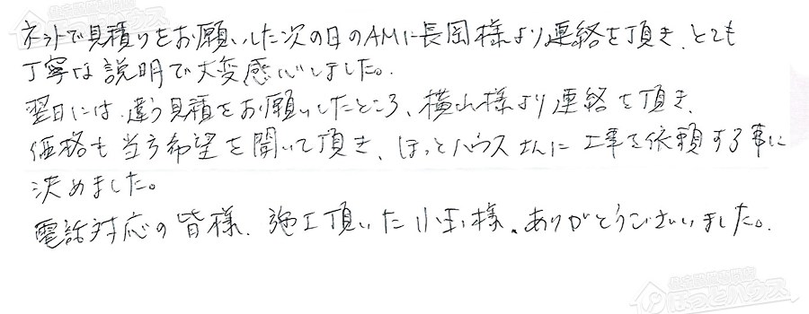 「ほっとハウス」の評判・お客様の声