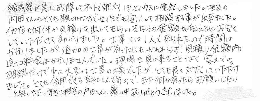 給湯器が急に故障してネットで調べてほっとハウスに電話しました。