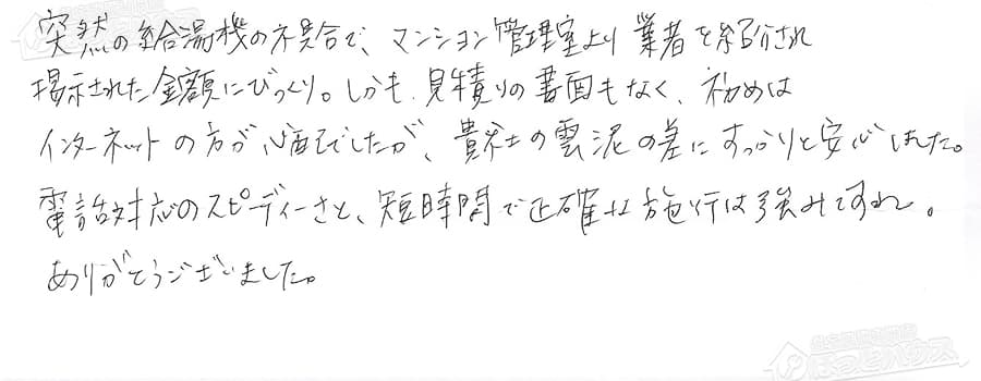 給湯器交換の評判