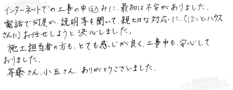 「ほっとハウス」の評判・お客様の声