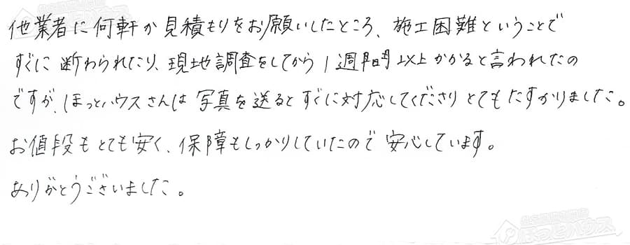 お客様の声 NO.67676 神奈川県相模原市中央区 H様