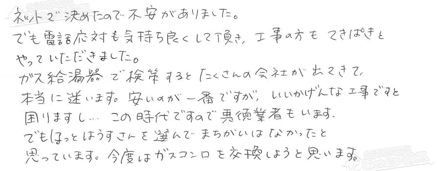 給湯器交換の評判