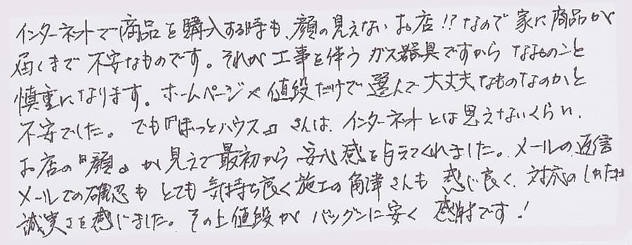 不安でした。でも『ほっとハウス』さんは、インターネットとは思えないくらい