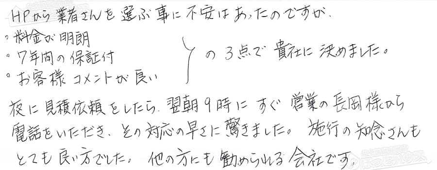 お客様の声 NO.72057 神奈川県横浜市鶴見区 S様