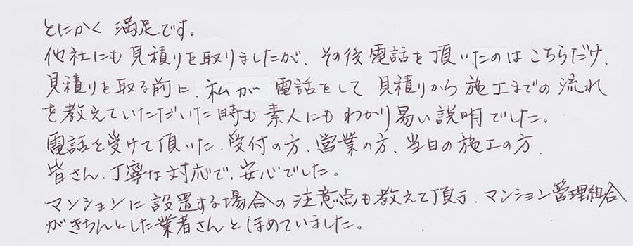 すぐに対応して頂き、とても満足…
