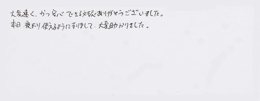 すぐに対応して頂き、とても満足…