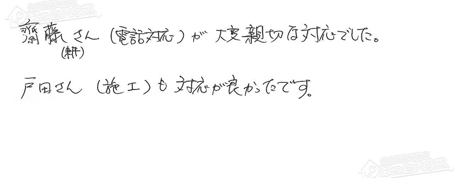 お願いさせていただいた事もきちんと対応いただき感謝の一言です。インターネットからの申し込みで