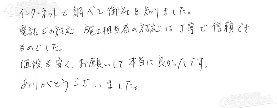 「ほっとハウス」の評判・お客様の声