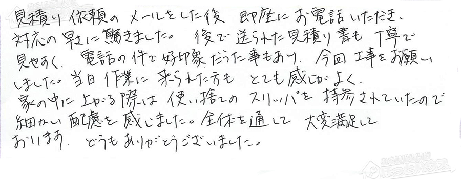 お客様の声 NO.76334 神奈川県横浜市青葉区 T様