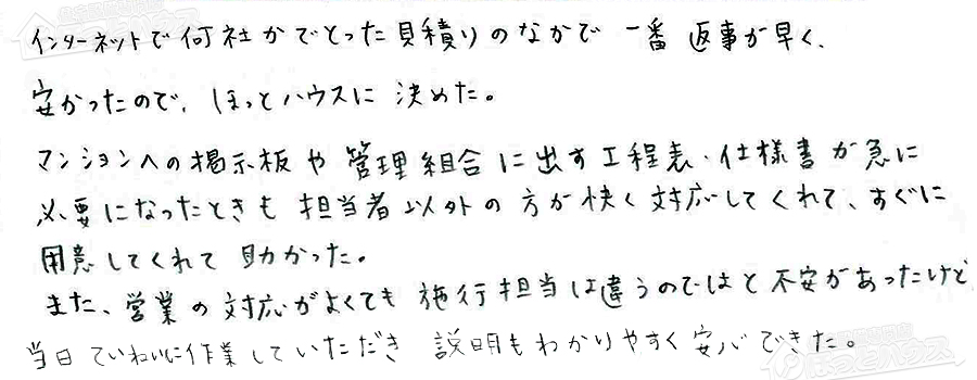 「ほっとハウス」の評判・お客様の声