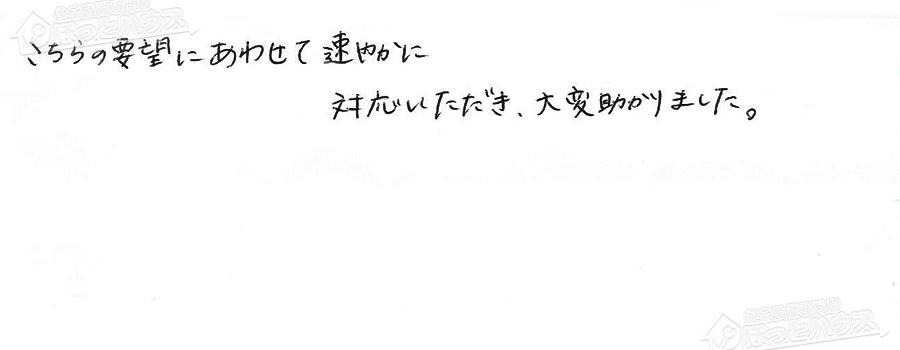 すぐに対応して頂き、とても満足…