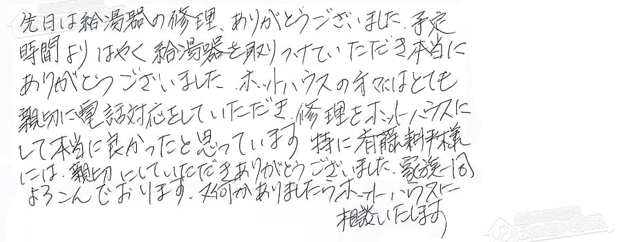 時間よりはやく給湯器を取りつけていただき本当に