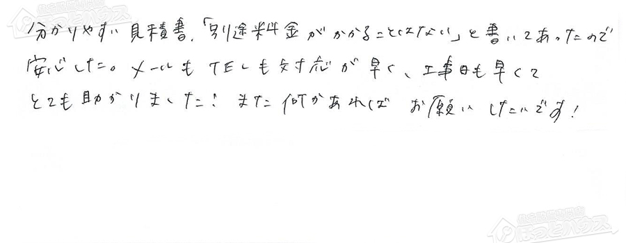 「ほっとハウス」の評判・お客様の声