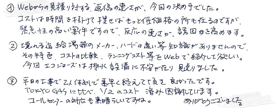 TOKYOGASに比べ、1/2のコスト済み感謝しています。