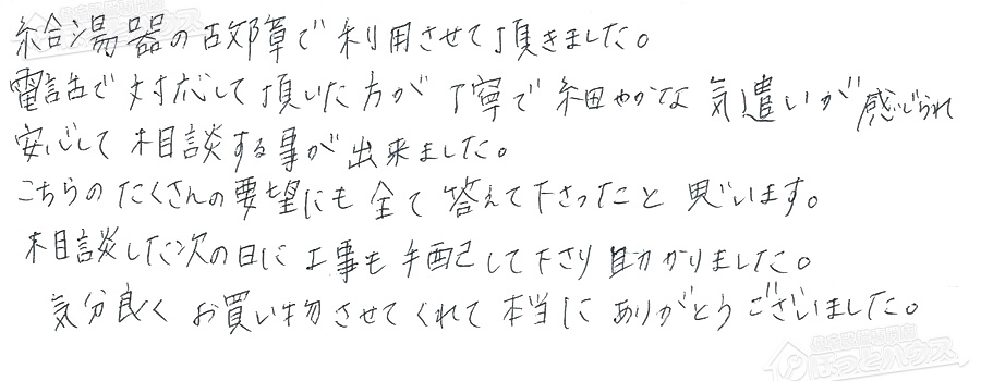 給湯器交換の評判