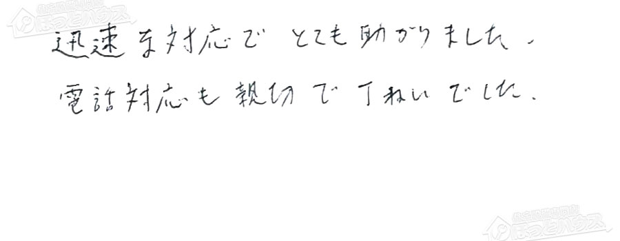 すぐに対応して頂き、とても満足…