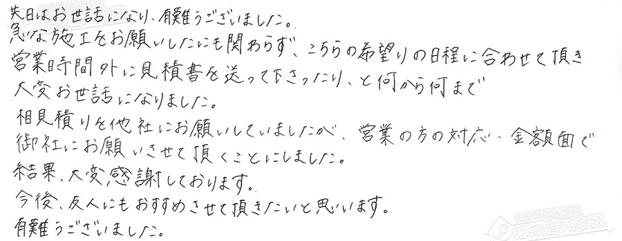 お客様の声 NO.80819 神奈川県横浜市旭区 K様