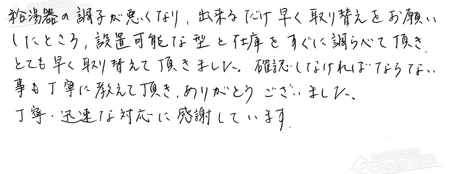 お客様の声 NO.80923 神奈川県横浜市金沢区 H様