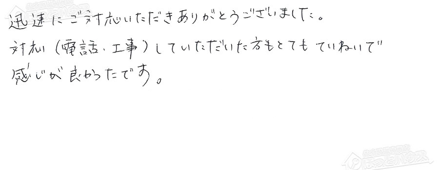 すぐに対応して頂き、とても満足…