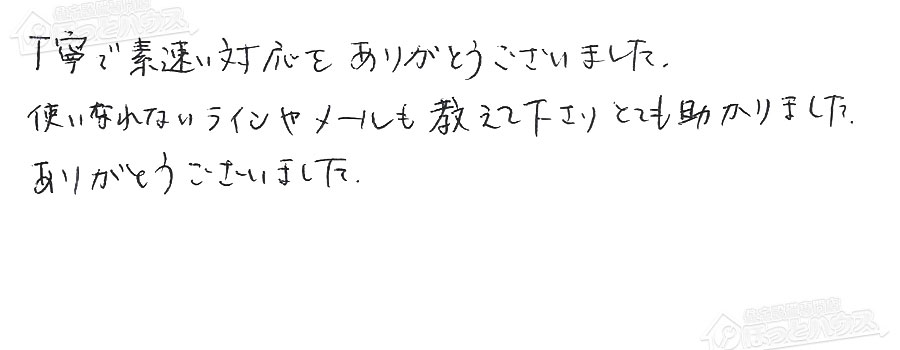 すぐに対応して頂き、とても満足…