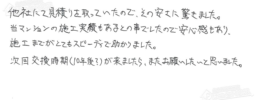 お客様の声 NO.84563 神奈川県川崎市中原区 A様