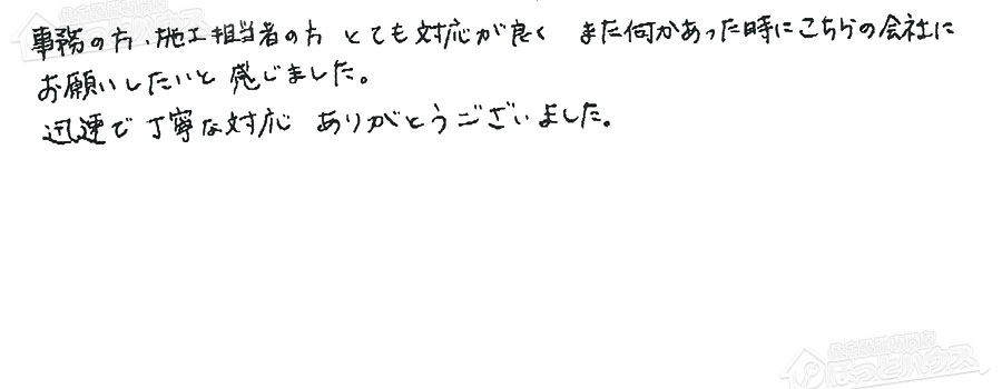 すぐに対応して頂き、とても満足…