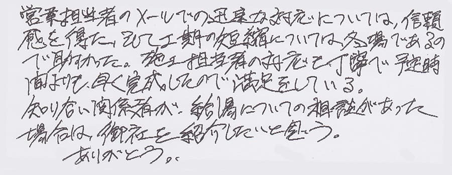お客様の声 NO.8617 東京都杉並区 O様
