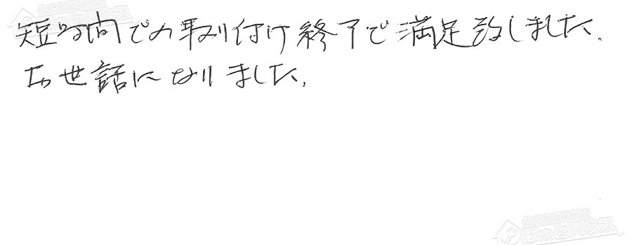 すぐに対応して頂き、とても満足…