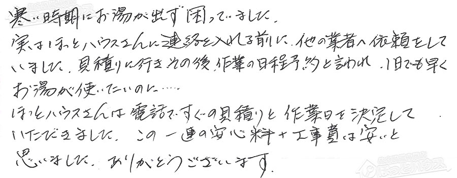 「ほっとハウス」の評判・お客様の声
