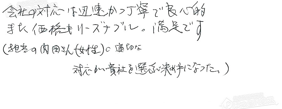 すぐに対応して頂き、とても満足…