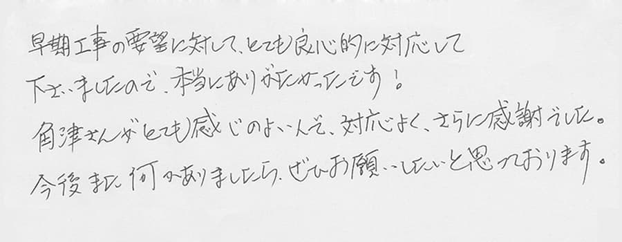 お客様の声 NO.895 埼玉県川口市 K様