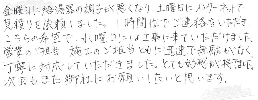 給湯器交換の評判