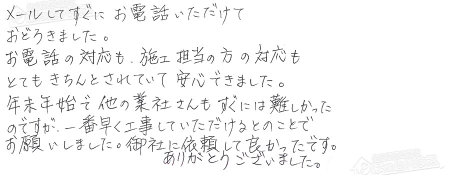 お客様の声 NO.91115 神奈川県横浜市栄区 K様