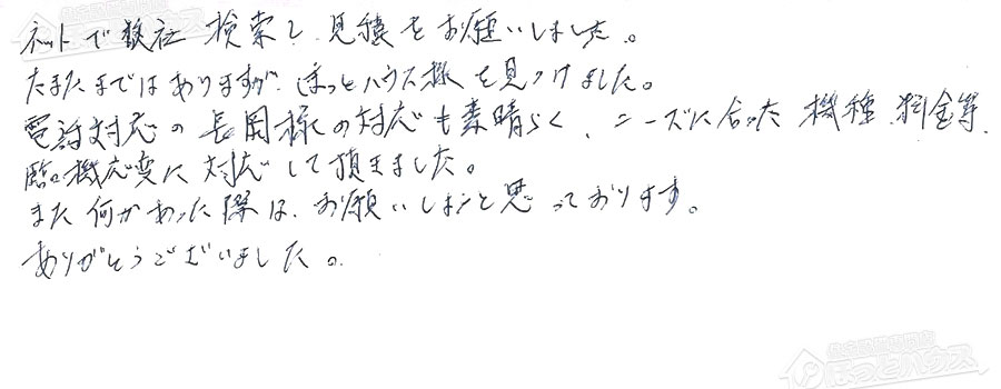 「ほっとハウス」の評判・お客様の声