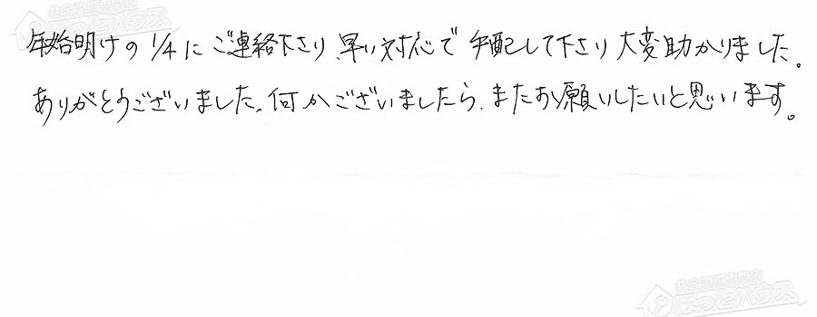 すぐに対応して頂き、とても満足…
