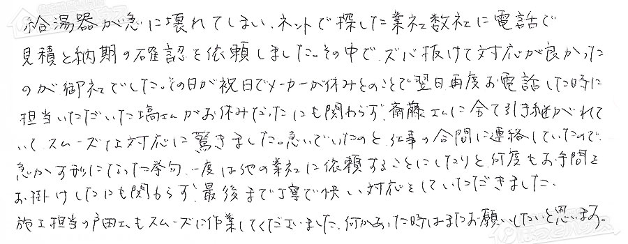 給湯器が急に壊れてしまい、ネットで探した業社数社に電話で