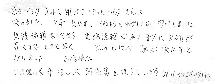 お客様の声 NO.93897 東京都西多摩郡 M様