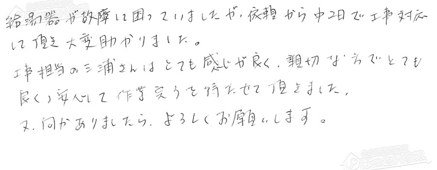 給湯器交換の評判