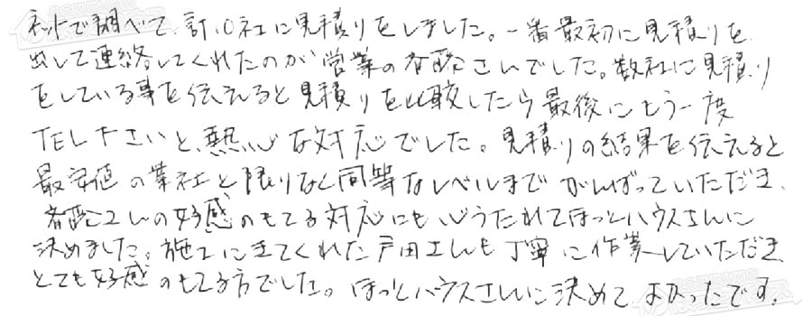 とても好感のもてる方でした。ほっとハウスさんに決めて、よかったです。