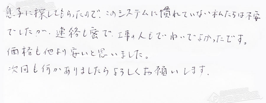 「ほっとハウス」の評判・お客様の声