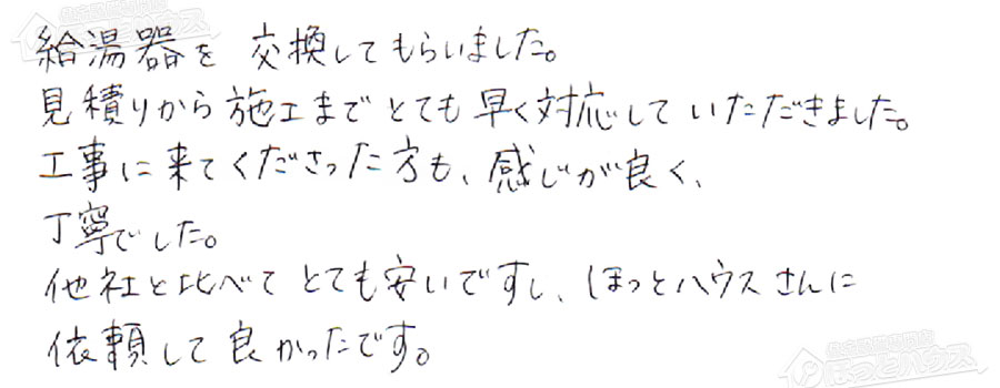 給湯器交換の評判