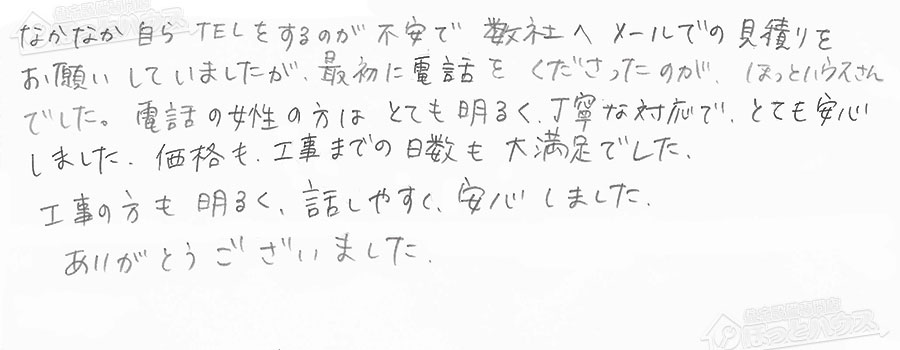 「ほっとハウス」の評判・お客様の声